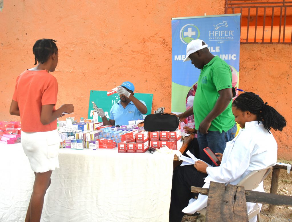 Son témoignage profondément émouvant illustre l’impact concret de ces cliniques mobiles. Selon ses propres mots : « Je suis ravie de cette clinique mobile. Hier (la veille de la visite de la clinique dans sa région), j’ai emmené mon enfant voir un médecin. Après la consultation, il a prescrit un médicament qui a coûté 4 250 gourdes. Je n’avais pas l’argent pour les acheter. Cependant, aujourd’hui (le jour de la clinique), je suis venue avec mon enfant, et nous avons reçu gratuitement les médicaments dont nous avions besoin. Ce qui m’a le plus frappé, c’est que tous les médicaments prescrits pour mon enfant ont été obtenus ici, sans rien payer. Je ne remercierai jamais assez Heifer Haiti pour ce soutien », explique la jeune femme, un sourire sincère illuminant son visage.