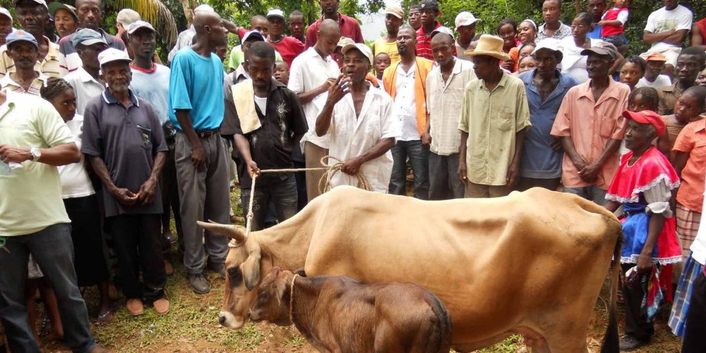 Heifer Haïti travaille avec les communautés rurales haïtiennes à travers des projets d’agriculture et d’élevage durables et intégrés. Cette approche a fait ces preuves et est un moyen pertinent de réduction de la pauvreté. Notre stratégie consiste à donner aux familles les moyens de transformer les situations causant la faim et la pauvreté en opportunité porteuse d’espoir et de prospérité. Notre approche va au delà de la simple assistance, nous dispensons des formations afin de renforcer les capacités personnelles et organisationnelles des bénéficiaires tout en proposant l’accès au micro credit. Nous partageons également des techniques concrètes et accessibles axées sur le renforcement de l’agriculture et de l’élevage. Nous travaillons aussi pour la modernisation des techniques agricoles et la régénération environnementale afin de favoriser la mise en place d’une agriculture et d’un commerce durable. Heifer Haïti apporte de l’espoir.
